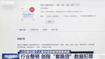 据21世纪经济报道记者了解到,公民身份认证服务是直接服务于“互联网加+政务”来提升政府公共服务效能,防范欺诈和金融风险为目的。但之所以有以上等问题主要在于,涉案公司非法将公民身份认证端口出售,并非法缓存公民身份数据,层层加价后,这些数据被小贷公司利用,查询价格从源头的0.1元一条,到查询底层时可能两三块钱一条,身份证照片可以随意获取。