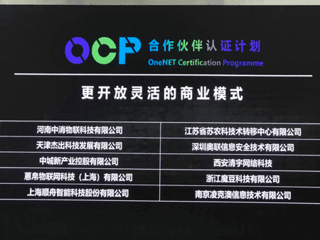 9月15日无锡物联网博览会中移物联网新产品发布会上,深圳奥联信息安全技术有限公司(以下简称“奥联”)获中国移动授牌,成为其OneNET认证级(OCP)合作伙伴。